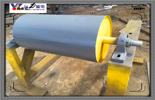 2、根据永磁磁力滚筒磁系包角的不同,可以分为永磁磁滑轮及永磁磁滚筒。磁滑轮的磁包角为360;,磁极组均匀分布在筒内圆周,组成满圆型磁系,磁系和筒体一起随皮带同速转动,工作平稳,安全可靠。由于其卸矿原理是通过皮带拖曳力实现的,一般用于磁场强度为180mT以下的永磁磁力滚筒,以减小对皮带损伤。